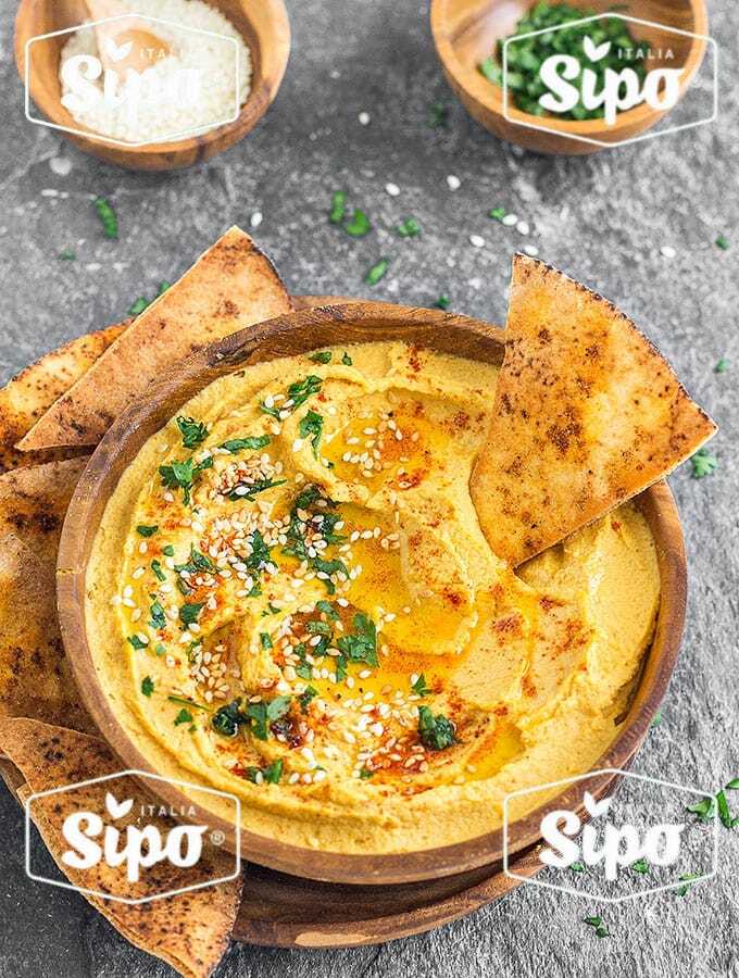 I like to serve this savory pumpkin hummus topped with sesame seeds, chopped parsley and a drizzle of olive oil along with some homemade toasted pitas for dipping. You can also serve it with tortilla chips, pita chips, whole wheat pita bread, crackers, vegetables, or use it as a spread on sandwiches and wraps.